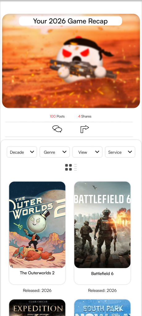 Games are the one medium that never had a clean, modern, social place to track what you play, review what you finished, share your taste, and discover new titles through people instead of algorithms. Steam reviews are chaotic. Backloggd is close, but it is still limited. Most tracking apps feel like spreadsheets. And none of them feel like a world.